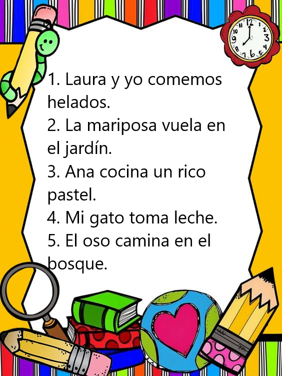 Escribe las oraciones dadas por tu maestra y subraya con la ayuda de la regla el verbo con color amarillo, si terminas tus oraciones puedes ilustrar.