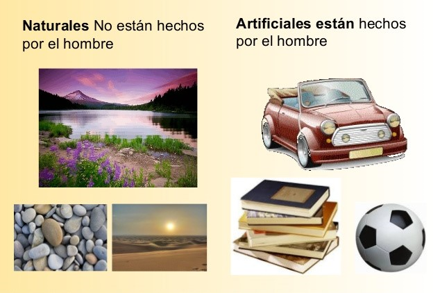 Continuamos con esta linda aventura, escribe e ilustra 3 objetos naturales y tres objetos artificiales observa la imagen como ejemplo.