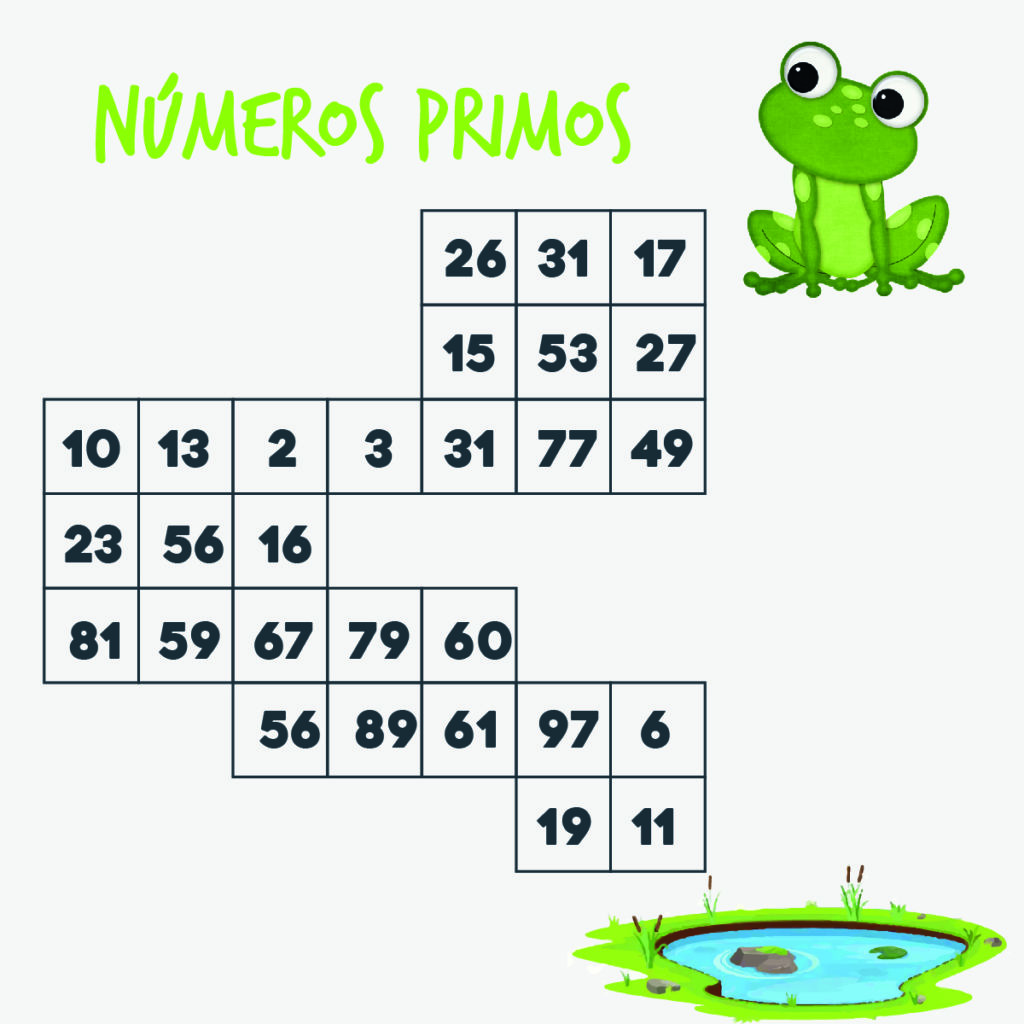 Dibuja el siguiente camino en tu cuaderno, y colorea solo los números que sean primos.