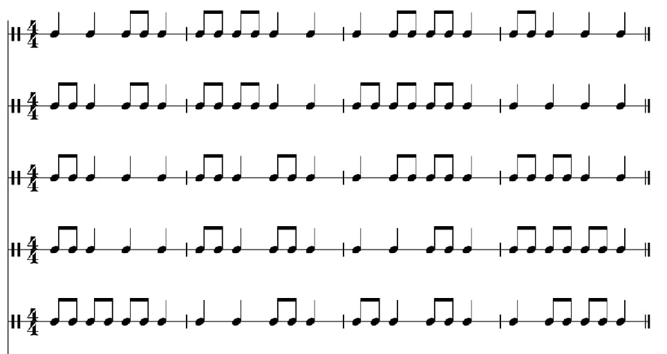 Lee cada ejercicio con tus palmas o con algún otro objeto que sea funcional en el ejercicio (instrumento, botes, baquetas).