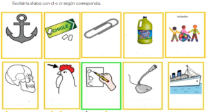 Escribir la sílaba con cl o cr según corresponda. Imprimir la hoja de trabajo adjunta para identificar las sílabas compuestas luego trabaje en el libro.