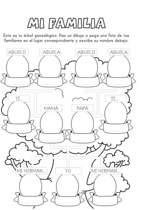 Si en dado caso no pueden imprimir la hoja del árbol genealógico, lo pueden dibujar en el cuaderno, guiándose por la imagen adjunta.