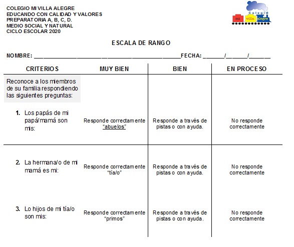 Nota: las actividades que realizaremos en esta clase serán evaluadas a través de una escala de rango en donde usted padre de familia calificará de acuerdo con su criterio y observación. Por favor enviar una foto de la escala de rango,  el día viernes 08 de mayo al correo prepa20mva@gmail.com