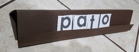 La tira de palabras se elabora con una hoja de construcción, se dobla una pestaña a lo largo de 2cm, luego doblar la hoja en 3 para formar la tira. Puedes guiarte por la imagen. Puedes utilizar la que elaboraste con la letra T.