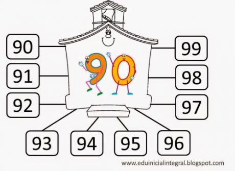del 90 al 99, y pégalos debajo de los círculos que realizaste