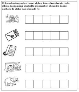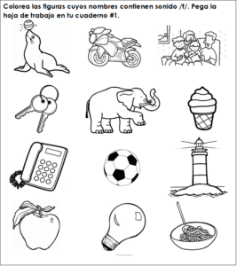 Imprime la hoja de trabajo y colorea las figuras cuyos nombres contiene el sonido /f/. En caso no tengas impresora, dibuja y colorea figuras cuyos nombres contienen sonido /f/.